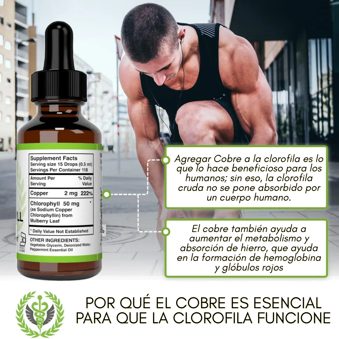 La clorofila líquida es conocida por su capacidad de purificar y oxigenar el organismo, ayudando a reducir toxinas, mejorar la digestión y aportar frescura interna.